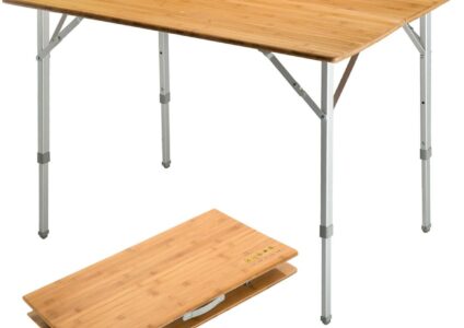 Mit diesem Campingtisch aus Bambusholz kombiniert KingCamp gekonnt Funktionalität und Stil! Der zeitlose Retro Look und die verwendeten Materialien mit natürlichem Look sind dabei ein echter Hingucker. Durch die faltbare Platte lässt sich der Tisch auf kompakte Maße reduzieren und ist dank der ausziehbaren Beine aus robustem Flugzeug-Aluminium in 3 Höhen zwischen 48, 57 und 70 cm variabel. Mittels der verstellbaren Füße können Bodenunebenheiten einfach ausgeglichen werden. Die Tischplatte aus Bambus ist…