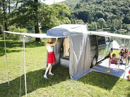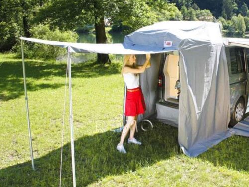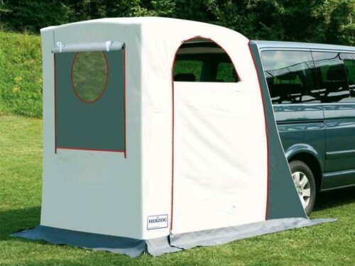 Das Modell Capri bietet ein geräumiges, freistehendes Familienzelt, welches ausreichend Platz für 4 Personen bietet. Das Zelt besitzt einen extra großen geschützten Vorraum mit Klarsicht-Fenstern (+ Gardinen) und 2 als Sonnensegel verwendbare Eingänge. In seiner Funktion als Heckzelt für Busse oder SUV verfügt das Capri über eine Schleuse, durch die jederzeit Zugriff auf den Kofferraum genommen werden kann. Das Innenzelt ist mit einem fest eingenähten Boden ausgestattet und verfügt über eine praktische…