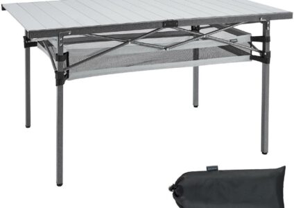 Dieser extra große Campingtisch für 4-6 Personen eignet sich ideal für Picknick, Camping oder auch den heimischen Garten. Die Tischplatte aus Aluminium ist wasserfest, hitzebeständig und leicht zu reinigen – der Tisch kann also bedenkenlos auch mal im Regen stehen bleiben. Dank dem robusten Stahlrahmen mit Dreiecksverstrebung und den Antirutsch-Füßen ist der Tisch äußerst stabil und mit bis zu 80 kg belastbar. Sowohl der Rahmen als auch die Tischplatte sind wetterfest und korrosionsbeständig. Unterhalb…