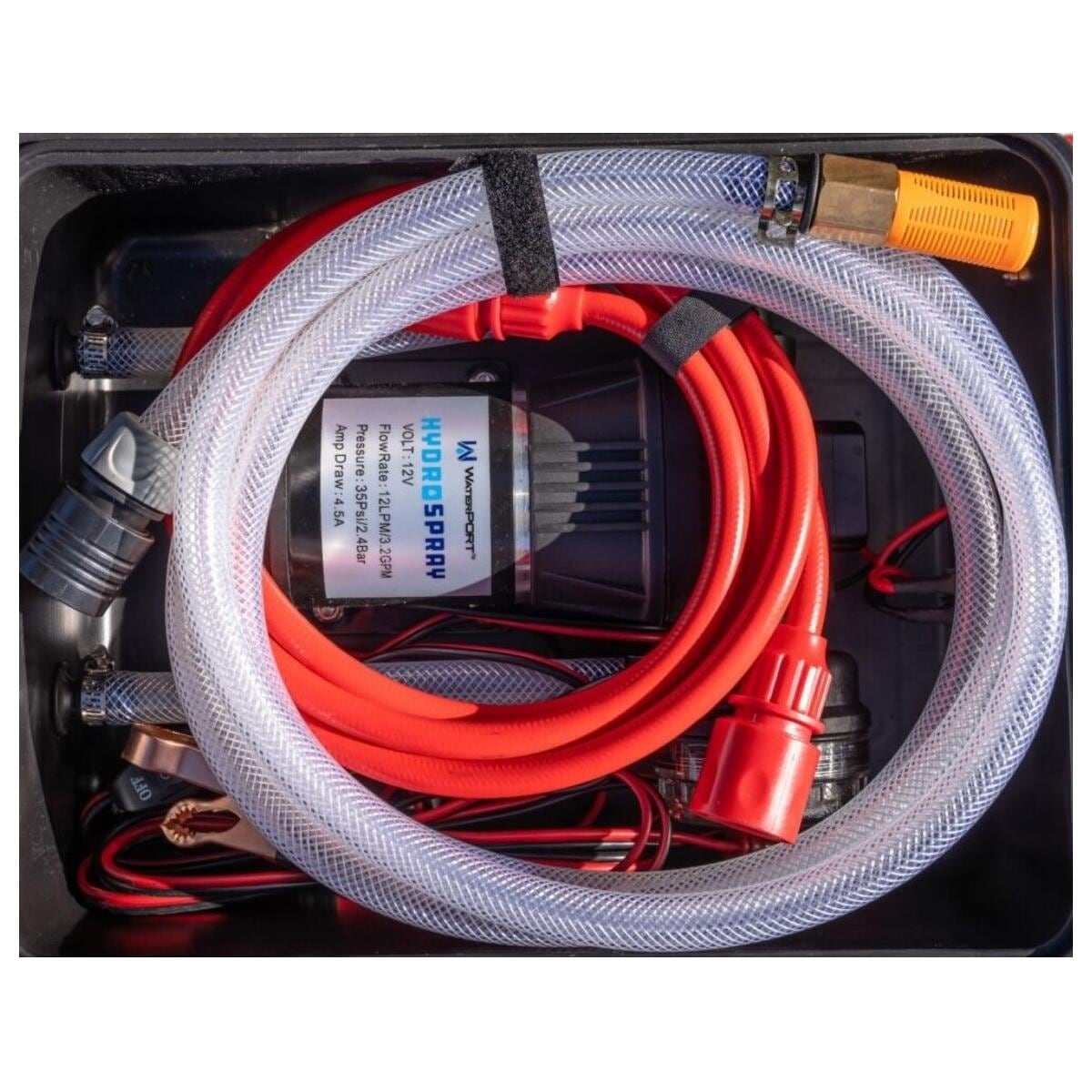 Das HydroSpray Pump System verwandelt jede Wasserquelle in ein Druckwassersystem. Betrieb über 12V-Stecker oder Batterieklemmen mit Anderson-Stecker Kompakter wetterfester Koffer zur Aufbewahrung Schnellkupplungen für einfachen Zugang Interne Tasche zur Aufbewahrung von zusätzlichem Zubehör Flachsicherung zur Absicherung Niedrige Leistungsaufnahme und ultrafeiner Netzfilter Technische Daten: Max. Durchfluss 12.8 Liter/min Max. Druck 2.4 Bar Größe 36 x 30.5 x 16.5 cm Gewicht 5 kg Lieferumfang:…