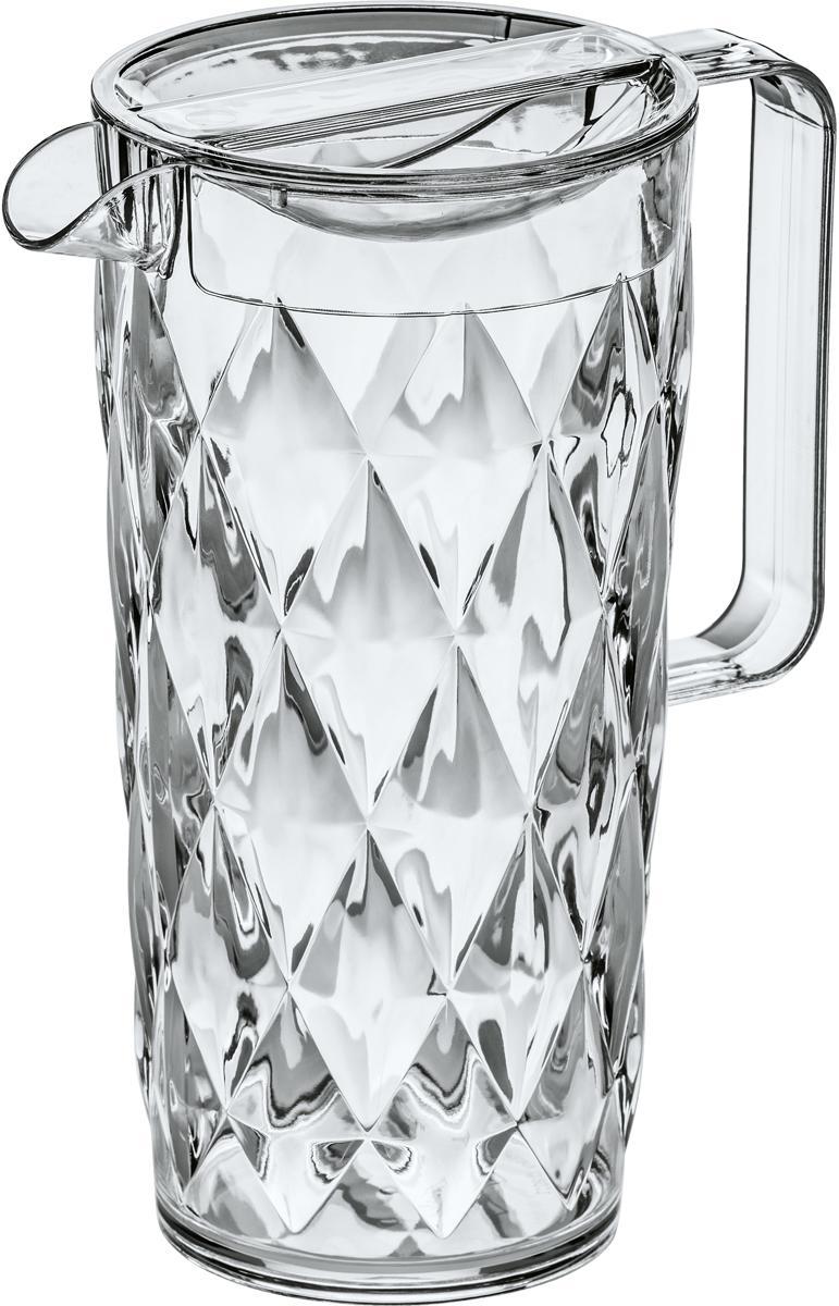 Karaffe CRYSTAL ist ein hinreißender Eyecatcher und isoliert kalte Getränke durch das edles Facetten-Design. Die Form ist inspiriert durch handgeschliffenes Glas, die Umsetzung zeitgemäß in modernem Werkstoff. Wie gemacht für sommerlich leichte Limonaden, aromatische Säfte und natürlich erfrischenden Cidre. Der Deckel besitzt zwei unterschiedliche Gießöffnungen, so bleiben Eiswürfel und Zitronenscheiben zuverlässig drin. Dreht man den Deckel um 90 Grad, wird der Krug komplett verschlossen und schützt…