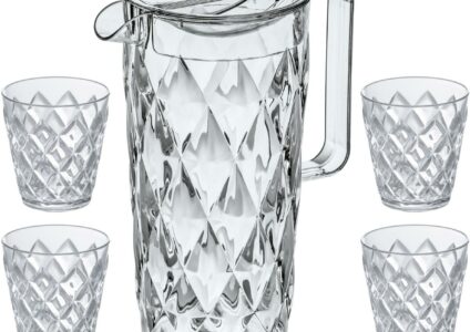 Karaffe CRYSTAL ist ein hinreißender Eyecatcher und isoliert kalte Getränke durch das edles Facetten-Design. Die Form ist inspiriert durch handgeschliffenes Glas, die Umsetzung zeitgemäß in modernem Werkstoff. Wie gemacht für sommerlich leichte Limonaden, aromatische Säfte und natürlich erfrischenden Cidre. Der Deckel besitzt zwei unterschiedliche Gießöffnungen, so bleiben Eiswürfel und Zitronenscheiben zuverlässig drin. Dreht man den Deckel um 90 Grad, wird der Krug komplett verschlossen und schützt…