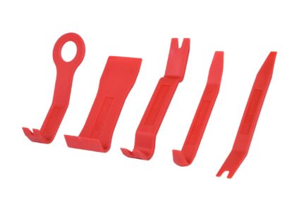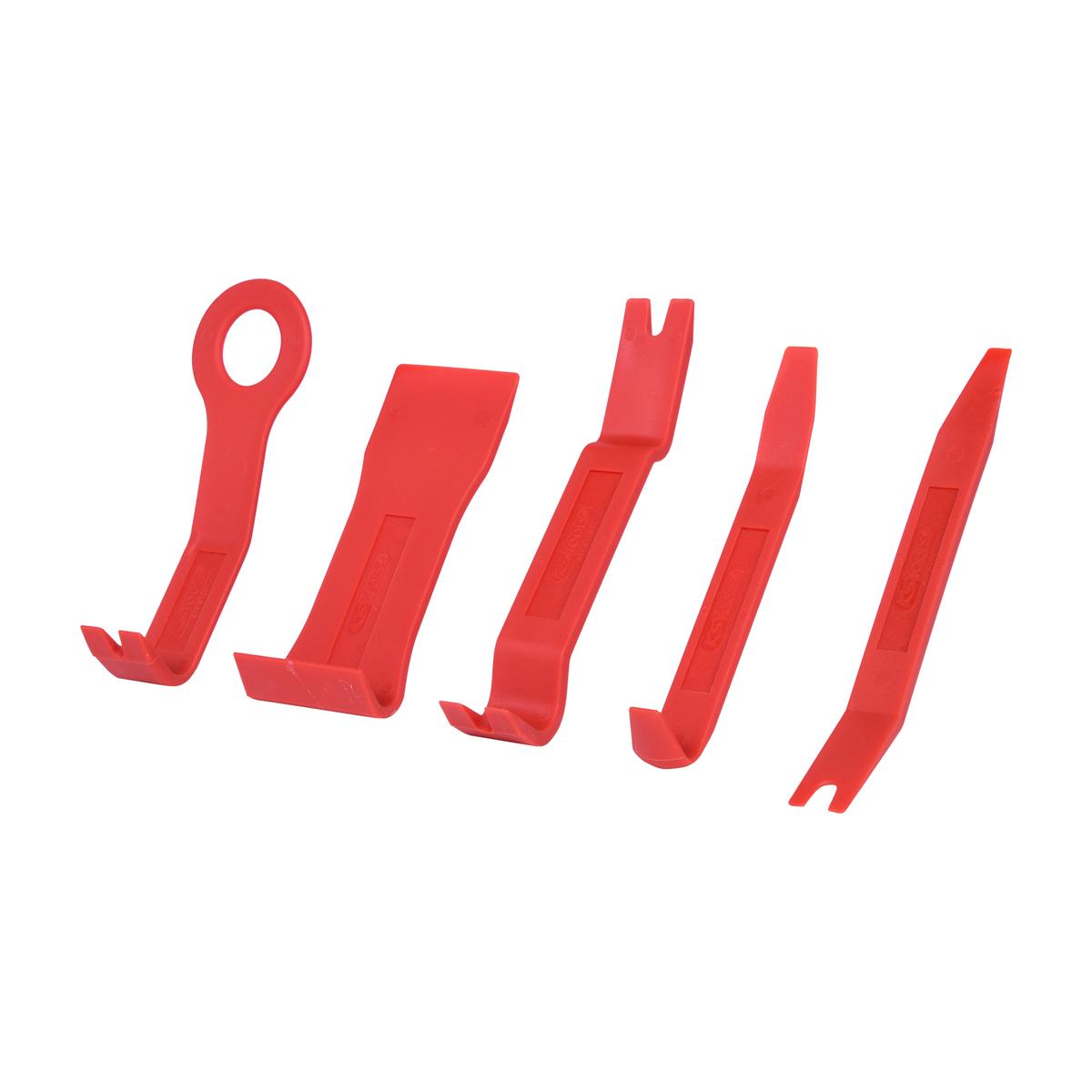 Kunststoffkeie ideal zum lackschonenden und beschädigungsfreien Lösen von Verkleidungsteilen, Zierleisten, usw. Praktische Zusammenstellung verschiedener Keil- und Hebelvarianten schlanke und robuste Ausführung für filigranes Arbeiten an leicht zerbrechlichen Kunststoffteilen Technische Daten: Material: Kunststoff Farbe: rot Gewicht: 300 g Lieferumfang: 5 Teile