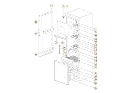 Ersatztür für die Thetford Kühlschränke N3141 / N4141 Abbildung Nr. 31 (gem. Explosionszeichnung) Thetford Art.Nr. 69052127R