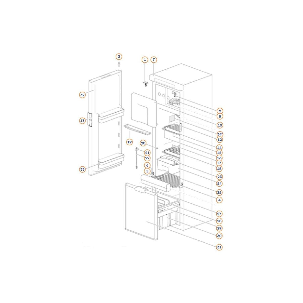 Ersatztür für die Thetford Kühlschränke N3141 / N4141 Abbildung Nr. 31 (gem. Explosionszeichnung) Thetford Art.Nr. 69052127R