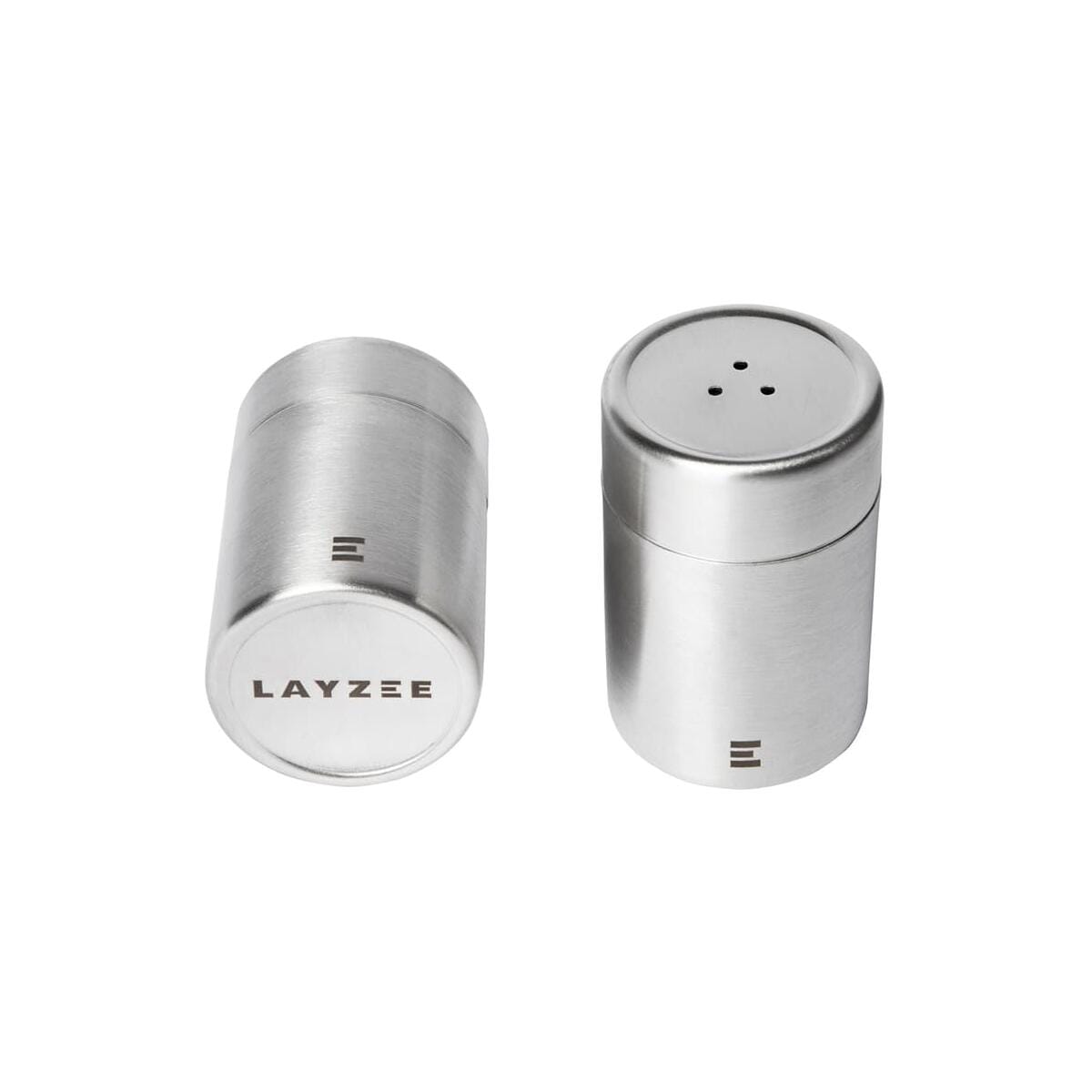 Salz- & Pfefferstreuer passend für die Layzee Box Classic ab Modell 2023 und Junior. sicherer Verschluss vom Deckel rostfreier Edelstahl Logo Laserprint Technische Daten: Material: Edelstahl Maße: 4 x 6,2 cm Lieferumfang: 2 Salz- & Pfefferstreuer