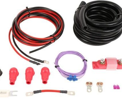 Anschlusssatz für alle LPS II Modelle. Technische Daten: Gewicht: 2,18 kg Lieferumfang: Anschlussleitung (2x 4 m, H07V-K 16 mm²), eine Seite mit Rohrkabelschuhen, M8 Signalleitung (4 m, H05V-K-1, 1,0 mm²) mit Sicherungshalter und Flachstecksicherung (3 A) Sicherungshalter mit Streifensicherung (80 A) 2x Klemmkabelschuh 4x Isolierkappe (3x rot, 1x schwarz) Wellrohr (3,7 m)