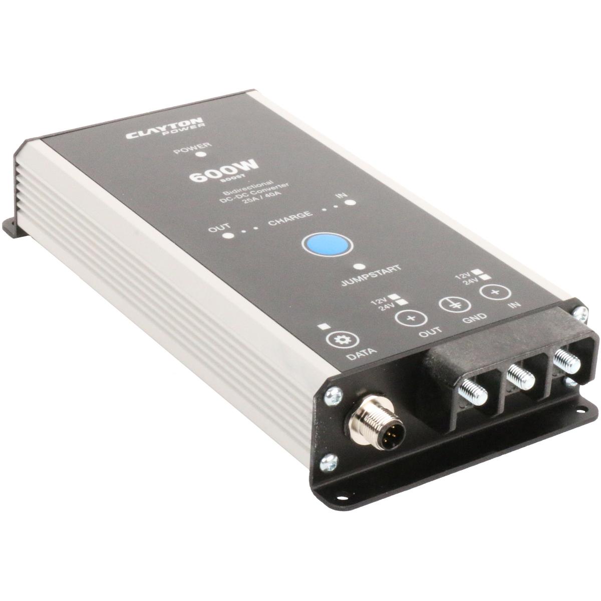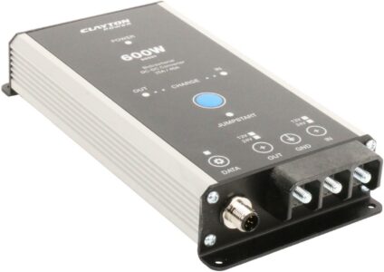 Der Ladebooster CLP 600 von Clayton Power ist ein aktiver DC-DC-Wandler mit 5-stufiger Ladekennlinie und Notstartfunktion, der während der Fahrt die Zusatzbatterie in Fahrzeugen aus dem Bordnetz lädt. mit 5-stufiger Ladekennlinie lädt 12-V-Batterien in 24-V-Fahrzeugen und umgekehrt erkennt Spannungsebenen automatisch CAN-Bus zur Anbindung an Lithium-System Optimiert für Euro-6-Fahrzeuge integrierte Notstartfunktion Technische Daten: Ausgangsspannung: 14,4 V/28,8 V Ausgangsstrom: 40 A Betriebstemperatur:…
