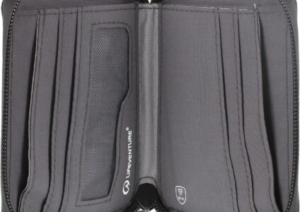 Gut ausgestattete Dokumententasche aus wasserfestem Material und mit wasserfestem Reissverschluß. Eine Aussenstecktasche ohne RFID-Schutz, sieben Kartenfächer (eines mit ID-Sichtfenster), eine Aufbewahrungstasche für ein Smartphone, ein Reisepassfach, ein Fach für die Boardingkarte, drei Fächer für Banknoten oder Tickets, ein internes Reissverschlußfach und ein Stifthalter. Mit RFID Schutz. RFID Schutzfach wasserabweisend Technische Daten: Maße: 15 x 11 x 2 cm Gewicht: 100 g