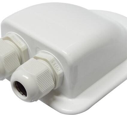 Wasserdichte Dach- und Deckendurchführung für zwei Kabel, inkl. Kabelverschraubungen. Verbindung erfolgt durch Kleben. Lässt sich bei Verwendung von Befestigungswinkeln unsichtbar unter dem Solarmodul anbringen. witterungs- und UV-beständig Anschlüsse: PG-Verschraubung Befestigung durch einfaches Kleben Technische Daten: Farbe: weiß passend für: campere-Solaranlage Material: ABS Acrylnitril-Butadien-Styrol Breite: 13 cm Höhe: 4 cm Tiefe: 9,4 cm Gewicht: 50 g Packmaß: 14 x 9,5 x 4 cm