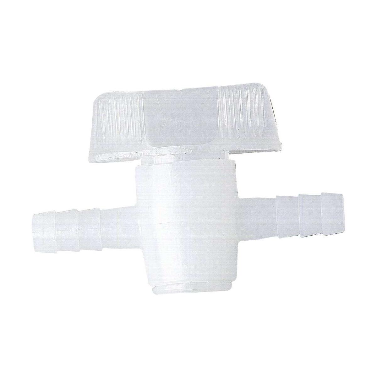 Zwischen-Absperrhahn für Schlauch 12 mm Innen-Ø. Technische Daten: Farbe: weiß Material: Kunststoff Durchmesser. 12mm Innen Lieferumfang: 1 Absperrhahn