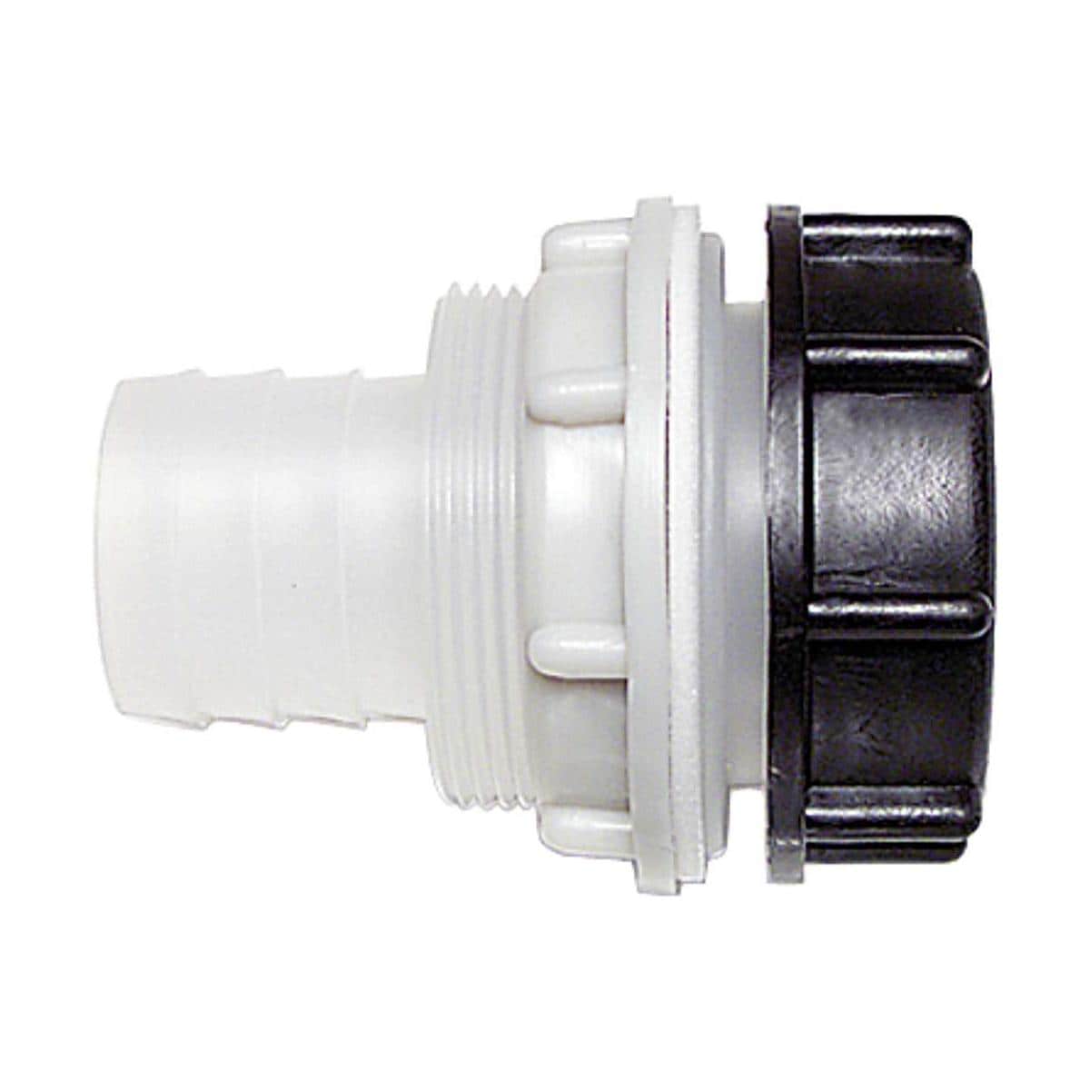 LILIE Einfüllstutzen 40 mm mit Deckel, Mutter und Dichtung. Trinkwasserecht. Technische Daten: Anschlüsse: 40 mm Tülle / 57 mm Außengewinde Gewinedlänge: links 30 mm, rechts unter Kappe: 24 mm Maße: H98, Durchmesser 78 mm, Innen 40 mm Gewicht: 102 g Farbe: weiß/schwarz Lieferumfang: 1 Einfüllstuten 40mm
