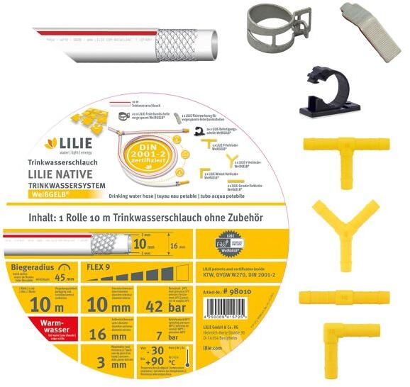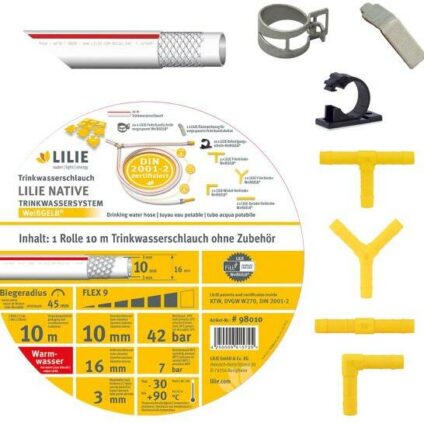 Lilie Native Trinkwasserschlauch mit Zubehör, 10m, Warmwasser