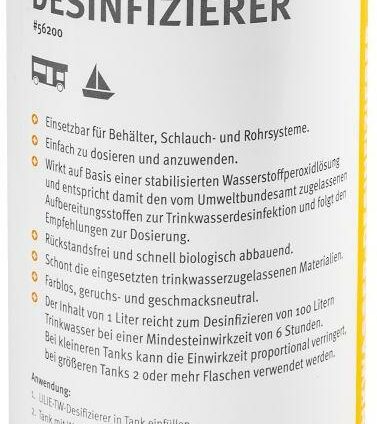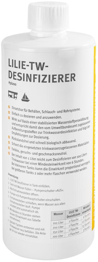 Lilie Trinkwasserdesinfizierer einsetzbar für Behälter, Schlauch- und Rohrsysteme einfach zu dosieren und anzuwenden wirkt auf Basis einer stabilisierten Wasserstoffperoxidlösung und entspricht damit den vom Umweltbundesamt zugelassenen Aufbereitungsstoffen zur Trinkwasserdesinfektion und folgt den Empfehlungen zur Dosierung. rückstandsfrei und schnell biologisch abbauend schont die eingesetzten für Trinkwasser zugelassenen Materialien farblos, geruchs- und geschmacksneutral der Inhalt von 1 Liter…