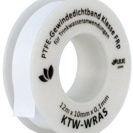 Das PTFE-Gewindedichtband von LILIE für Trinkwasseranwendungen ist DIN EN 751-3 Klasse FRp zertifiziert und DVGW geprüft. Die handliche 12-Meter-Rolle gewährleistet zuverlässige und sichere Rohrverbindungen in Trinkwassersystemen. Vertrauen Sie auf Qualität und Normkonformität für Ihre Installationen.Technische Daten:Breite: 10 mmLänge: 12 mNettogewicht: 60 g/m²