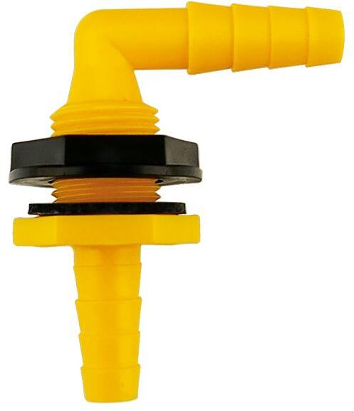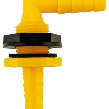 Winkelverschraubung mit beidseitigen Schlauchtüllen und Gewindestutzen, mit Dichtung und Mutter. Für ø 10/12 mm Anschluss.Technische Daten:Maße: H84 x B63 x T36 mmDurchmesser Gewinde: 22 mmGewindelänge: 25mmAnschluss: 1/2˝-A / 10/12 mmMaterial: LM T101 (PP)Temperatur: 120 °C max., 85 °C DauerDruck: 7 bar max.Packmaß: 12,1 x 12 x 3,9 cmGewicht: 19 g
