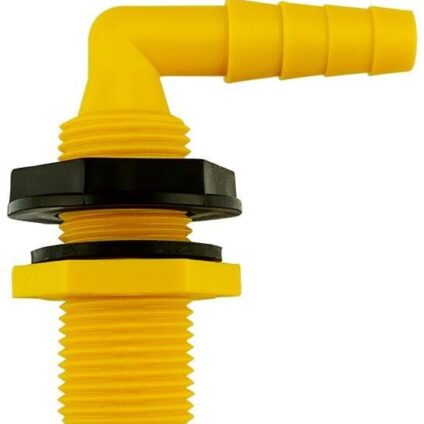 Winkel-Verschraubung für 1/2 x 10/12 mm Anschluss. Trinkwasserecht, zur Entnahme/Entlüftung in Kanistern/Wassertanks. Geringer Platzbedarf, mit Kontermutter und Dichtung.Technische Daten:Druck: 7 bar max.Gewinde: 1/2 ZollTülle 10/12 mmMaße: H64 x B59 x T36 mmMaterial: PP PolypropylenGewicht: 20 g