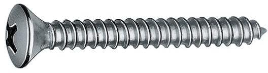 Selbstschneidende Linsensenk-Blechschraube Form C mit Kreuzschlitz H. Technische Daten: Typ: DIN 7983 Material: Edelstahl Größe: 2,9 x 19 Gewicht: 25 g Inhalt: 25 Stück