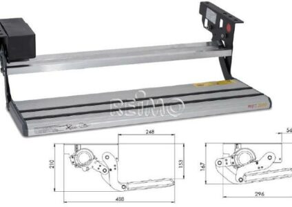 Elektrische Trittstufe von Lippert (ehemals Projekt 2000) für Wohnmobile oder Kastenwagen Hochleistungs-Motor mit Thermoschutzschalter Trittbrett aus Aluminium mit Antirutsch-Gummi Anti-Schock-Kupplung Handauslösesystem für den Notfall Technische Daten: Abmessungen (BxTxH) 500 x 275 x 155 mm Gewicht 4,1 kg Stromversorgung: 3 A Lieferung inkl. Anschlusskabel
