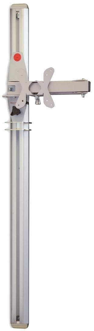 Höhenverstellbar, ausziehbar und ausrichtbar mit Bremse. Höhe 990 mm. Wandabstand min. 93 mm, max. 277 mm. Maximale Belastbarkeit 8 kg. Gewicht 1,65 kg. Farbe Silbergrau.