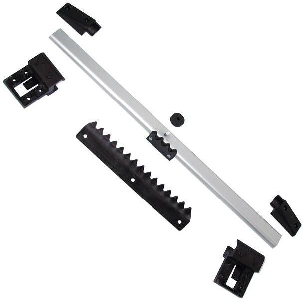 Tischschiene aus ovalem Aluminium-Rohr, silber eloxiert. Horizontal ist die Schiene blockiert. Durch Anheben der Tischplatte ist diese in beide Richtungen verschiebbar. Inkl. Endstücke, Raster, untere Schiene und Plattenträger. Technische Daten Maße (BxTxH): 3 x 95 x 1,5 cm Packmaß: 95,5 x 9 x 6,5 cm Material: Aluminium Gewicht: 448 g
