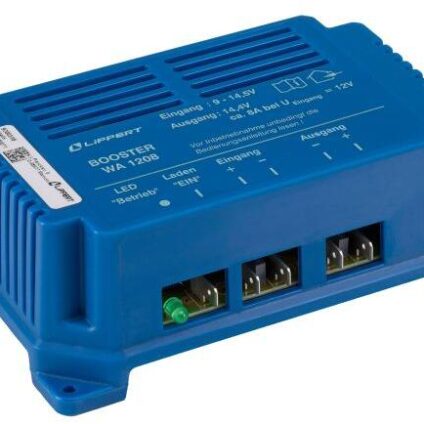 Der Booster WA 1208 erhöht die Ladespannung, die im Caravan zur Verfügung steht, auf maximal 14,4V, so dass die Caravanbatterie bei Fahrbetrieb optimal geladen wird. Der Booster trennt die Caravanbatterie vom Zugfahrzeug, wenn der Motor und die Zündung ausgeschaltet sind. Einfache Montage durch integriertes Trennrelais. Absinken der Ladespannung wird verhindert. Merkmale: optimale Ladung mit 8A erhöht die Ladespannung auf 14,4V neues Kunststoffgehäuse Technische Daten: Typ. Ladestrom 8A Max….