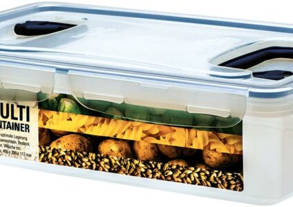 Diese praktische Aufbewahrungsbox überzeugt durch ihre einzigartige luftdichte Dichtung. Dank des großen Fassungsvermögens eignet sie sich ideal zur Lagerung von kleinen Haushaltsgegenständen. Durch die halbtransparente Farbgebung lässt sich der Inhalt einfach und leicht überprüfen. handlich und einfach zu transportieren sichere und BPA-freie Materialien mikrowellen- und gefriertruhengeeignet spülmaschinengeeignet besonders langlebig und platzsparend mit Silikon-Doppelkammer-Dichtung mit…