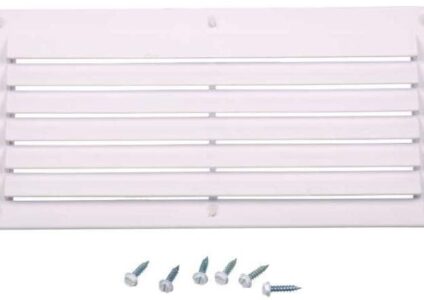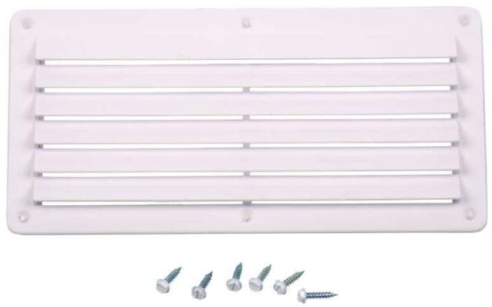 Weiße, aufschraubbare Gitter mit Lamellen. UV-beständiges ABS. Dichtmasse ist bereits aufgetragen. Aufbauhöhe ca.14mm. inkl. Schrauben. Produktmaß: 142 x 80mm