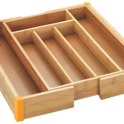 Der ausziehbare Besteckkasten Bambus bringt dekorative Funktionalität in Küche oder Esszimmer. Im modernen Design aus hochwertigem Bambus gefertigt macht der schöne Korb in jeder handelsüblichen Schublade eine gute Figur. Mühelos lässt er sich beidseitig ausziehen (von 25,7 bis 38,5 cm) und passt sich so ganz einfach jeder Schublade an. Dabei ermöglicht der Besteck-Kasten in fünf bis sieben separaten Fächern verschiedener Größen die übersichtliche, getrennte Aufbewahrung von Messern, Gabeln, Löffeln,…
