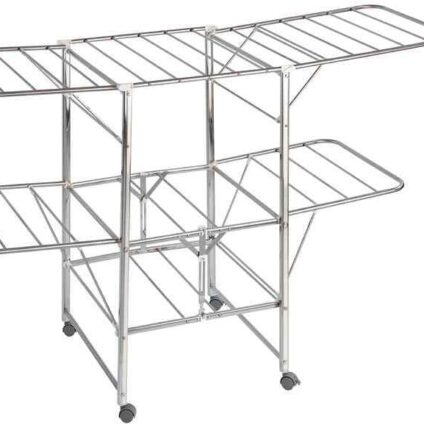 Das Trocknen der Wäsche kann manchmal zu einem logistischen Problem werden. Mit dem mobilen Wäschetrockner aus dem Hause Maximex können Sie dieses Problem schnell in den Griff bekommen. Auf zwei Ebenen bietet der clevere Wäscheständer ausreichend Platz, um Ihre Wäsche zu trocknen. Längere Textilien können Sie auf den vier ausklappbaren Flügeln problemlos trocknen. Die extra breiten Edelstahl-Trockenstäbe mit einem Durchmesser von 8 mm verhindern Falten und Abdrücke auf den nassen Wäschestücken. Zudem…