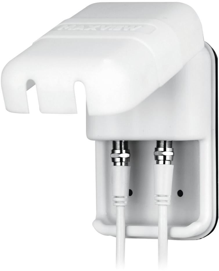 Maxview Außensteckdose für Sat-Anlagen Die Maxview Aussensteckdosen sind für Sat-Anlagen geeignet Mit F-/F-Anschluss zur Signal-Einspeisung Durch die Verarbeitung und die vorhandene Klappe stellt die Maxview Aussensteckdose einen wetterfesten Kabeleingang am Fahrzeug dar Technische Daten: Farbe: weiß Höhe (Abdeckung geschlossen) 116 mm Breite 66 mm Tiefe 32 mm LNB: Twin F-/F- Lieferumfang: Außensteckdose, 3m Anschlusskabel, Verbindungsstecker, Bedienungsanleitung