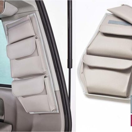 Die praktische Tasche wird einfach und schnell mit Klett oder Druckknöpfen an der D-Säule des Fahrzeugs befestigt, passend für die unten aufgeführten Fahrzeuge mit einem Platz von 44 x 24 cm, wie Beispielsweise der VW T5/T6. Die Tasche ist aus robustem, hochwertigem Kunstleder gefertigt und macht nicht nur optisch was her sondern schützt auch vor Staub und Schmutz. Mit ihren 2 aufgenähten Volumentaschen bietet sie viel Platz für beispielsweise CD',s, Kartenmaterial, Handy und Co. Außerdem verfügt sie…