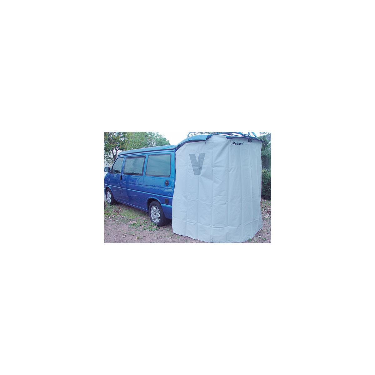 Dieses schnell montierte Heckzelt ist für viele gängige Heckklappen-Fahrzeuge lieferbar. Es eignet sich als Sanitärraum zum duschen, als Toilettenzelt, als Umkleide oder auch als wettergeschützte gemütliche Sitzecke. In heißen Sommernächten ist das Zelt zur besseren Schlafplatzbelüftung verwendbar. Es verfügt über zwei von innen verschließbare Moskito-Fenster und einen seitlichen Tunneleingang. Befestigung mit Klettverschluss an der Heckklappe Stoff 100 % wasserdicht und schimmelresistent hohe…
