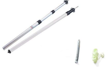 Die Teleskopstange dient als Aufstellstange für Sonnensegel, Heckzelte und Sonnenvordächer. Technische Daten: Länge: 95 – 230 cm Packmaß: 100 x 10 cm Gewicht: 800 g Material Aufstellstange: Aluminium Material Hering: Stahl Material Zeltleine: Polypropylen