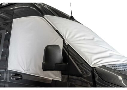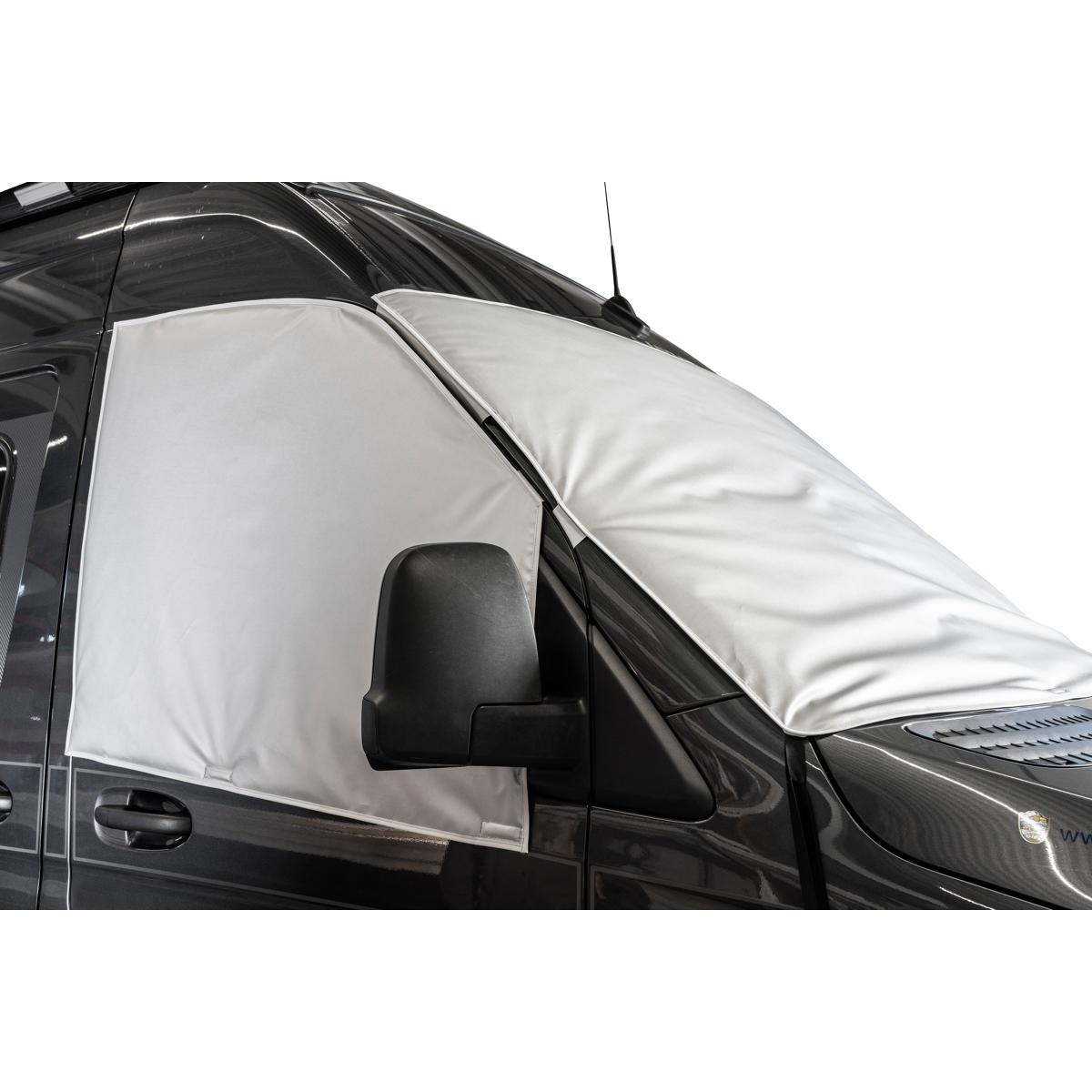 Isolierung / Beschattung für Fahrer- und Beifahrerfenster im Set (2tlg). Schutz vor Kälte und Hitze. Die Isolierung von Mayr Planen und Zelte wird außen angebracht und schützt so schon die Scheibe vor starken Temperaturschwankungen. Das verzögert eine Ableitung der Außentemperatur an den Innenraum. Die Montage –siehe Beispielbilder- erfolgt bei allen Fahrzeugen mit eingenähten Magneten außen und innen. An den Fensterkanten wird eine Lasche über die Ecken gelegt. Technische Daten: Fahrzeugtyp: Mercedes…