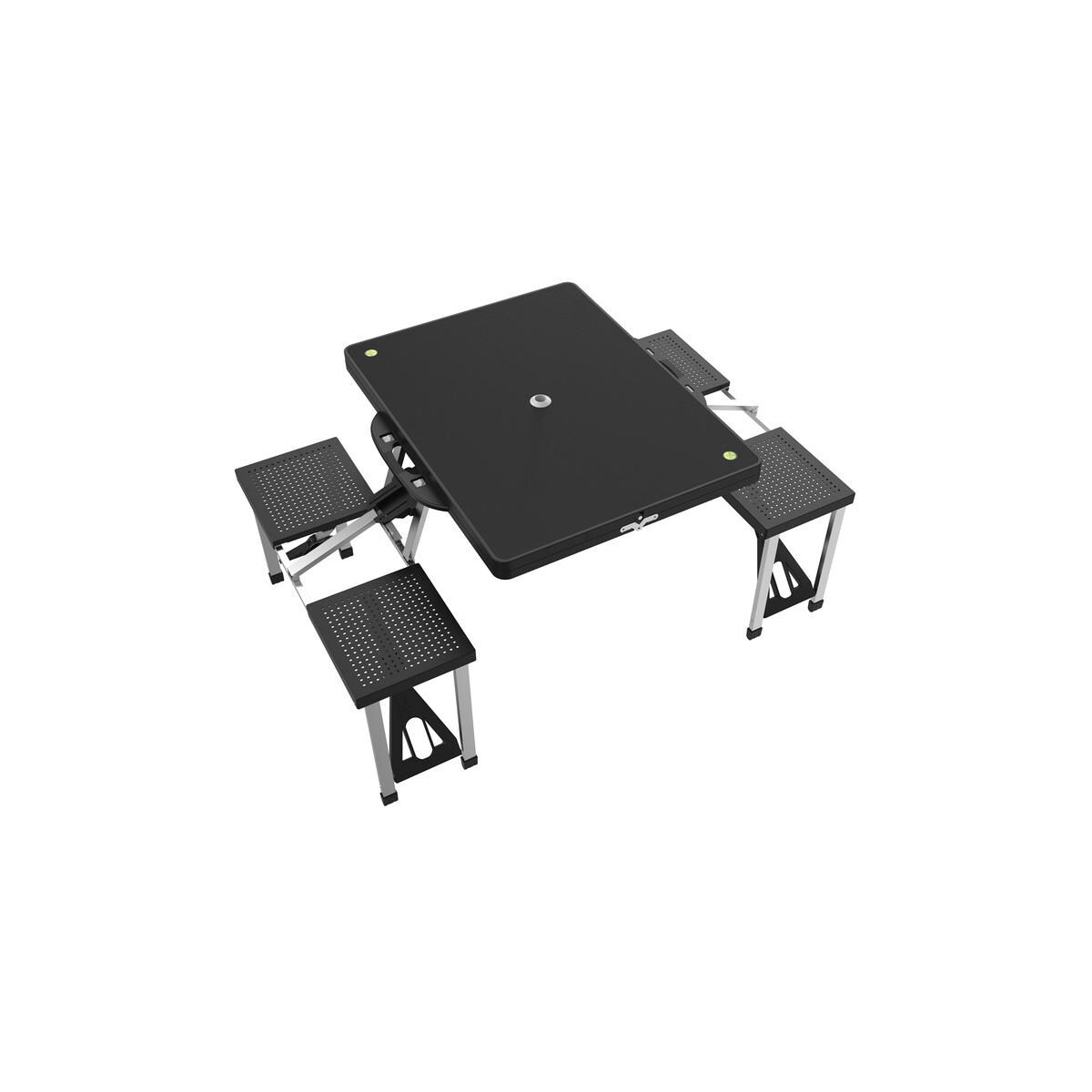 Der Picknickttisch ist blitzschnell aufgebaut und verfügt über 4 fest installierte Sitze, die je bis max. 60 kg belastbar sind. Der Tisch wird in der Mitte zu einem Koffer mit praktischem Tragegriff gefaltet und ist somit einfach zu transportieren. Der Tisch besitzt in der Mitte ein Schirmloch – für Regen oder Sonnenschirm. schneller Auf- und Abbau als Kindertisch geeignet Tisch mit Aussparung für Sonnenschirm Technische Daten: Gewicht: 6,5 kg Maße: B65 x L85 x H67 cm Packmaß: 65 x 85 x 11 cm Material…