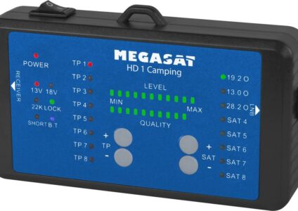 Einfache Messung der DVB-S/S2 Signale durch eine LED Anzeige mit Signalpegel und -qualität. Auswahl von bis zu 8 programmierten Satelliten sowie 8 Transponder je Satellit (frei editierbar). Spannungsversorgung durch Sat-Receiver oder externes USB Gerät (z. B. Powerbank) 13 V, 18 V, 22 kHz Schaltung sowie der gefundene Satellit werden mit LEDs angezeigt (gefundenes Signal wird zusätzlich akkustisch wiedergegeben). Integriertes Bluetooth®-Modul zur Verbindung mit einem Smartphone oder Tablet. App für iOS…