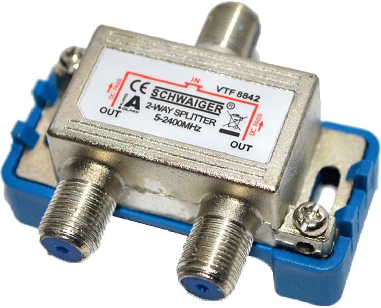 Mit F-Anschlüssen, zum Anschluss von 2 Receivern an eine Antenne, Gleichstromdurchlass auf beiden Ausgängen.