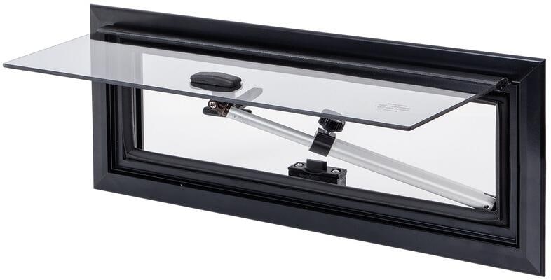 Alkoven- & Hochdachfenster- kleines Aufstellfenster für Licht und Luft an engen Stellen Ideal für Alkoven oder Hochdächer Stabiler Aluminiumrahmen Sicherheitsglasscheibe ohne Tönung Ausstellwinkel max. 90° Aluminium-Aussteller mit manueller Feststellschraube Technische Daten: Material Fenster: Echtglas Material Rahmen: Aluminium Rahmenfarbe: schwarz Bestell- / Ausschnittmaß (BxH): 460 x 160 mm Gesamt- / Außenmaß (BxH): 490 x 185 mm Wandstärke: 30-35 mm Lieferumfang: 1 Aufstellfenster ohne Einbaumaterial…