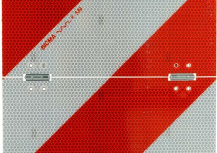 Für hinten bzw. vorne links. Klappbar „bauartgenehmigt“, horizontal klappbar, nur 285 x 285 mm, im Flächeninhalt um die Hälfte kleiner als die bekannte Warntafel 423 x 423 mm. Die Park-Warntafel besteht aus 1 mm starkem Aluminium-Blech und ist an allen Seiten gebörtelt, mit Drehwirbel zur Befestigung am Fahrzeug. 8 Rückstrahler sorgen für starke Reflektion. Waschanlagen- und hochdruckreinigerfest. Maße: 285 x 285 mm.