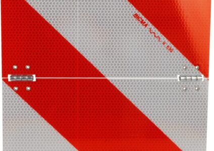 Für hinten bzw. vorne links. Klappbar „bauartgenehmigt“, horizontal klappbar, nur 285 x 285 mm, im Flächeninhalt um die Hälfte kleiner als die bekannte Warntafel 423 x 423 mm. Die Park-Warntafel besteht aus 1 mm starkem Aluminium-Blech und ist an allen Seiten gebörtelt, mit Drehwirbel zur Befestigung am Fahrzeug. 8 Rückstrahler sorgen für starke Reflektion. Waschanlagen- und hochdruckreinigerfest. Maße: 285 x 285 mm.