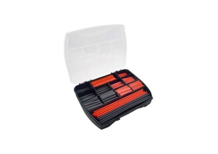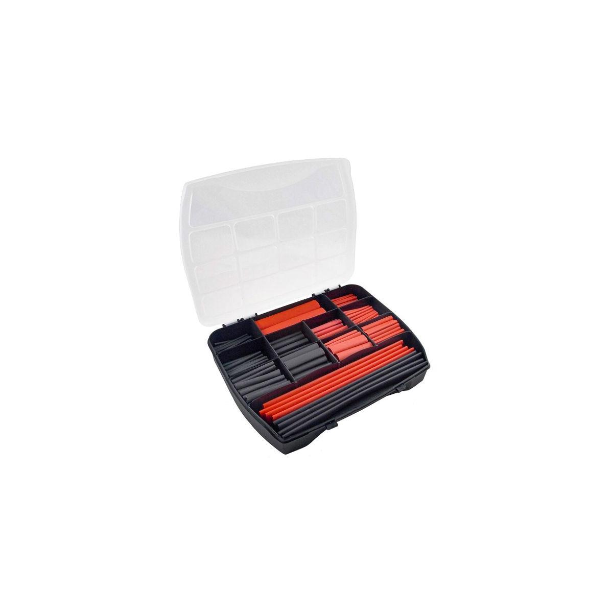Schrumpfrate 2:1, 406-teilig Technische Daten: Farbe: schwarz,rot Breite: 25 cm Höhe: 4 cm Tiefe: 21 cm Gewicht: 398 g Packmaß: 25 x 21 x 5 cm Lieferumfang jeweils in rot und schwarz: 60 x 2,4:1,2 mm – L: 50 mm 60 x 3,2:1,6 mm – L: 50 mm 40 x 4,8:2,4 mm – L: 50 mm 20 x 6,4:3,2 mm – L: 50 mm 15 x 9,5:4,8 mm – L: 50 mm 4 x 12,7:6,4 mm – L: 100 mm 4 x 19,1:9,6 mm – L: 200 mm