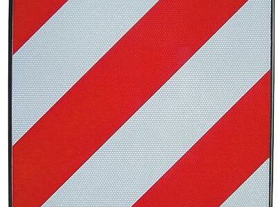 Auch im vereinten Europa hat jedes Land sein Recht: Pflicht in Spanien! Jede überstehende Ladung muss mit einer rot-weiß schraffierten Warntafel (50 x 50 cm) gekennzeichnet werden. Im Unterschied zur Warntafel für Italien hat die Tafel für Spanien zusätzlich einen schwarzen Rand.