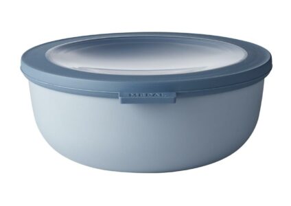 Multischüssel Cirqula 1250 ml in der Farbe Nordic Blue ist ideal für das Aufbewahren und den Transport von groβen Portionen Suppe, Fleisch oder Mahlzeitsalaten. Die Cirqula Serie von Mepal wurde speziell für einen vollständigen ‚Circle of Use‘ entwickelt. Vom Aufbewahren von Mahlzeiten im Kühl- oder Gefrierschrank, dem Erwärmen in der Mikrowelle (ohne Deckel) und dem Servieren (direkt) auf den Tisch. Die Cirqula besteht aus unzerbrechlichem Material und das Sichtfenster im Deckel zeigt immer den Inhalt…
