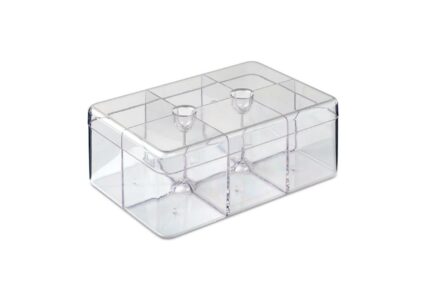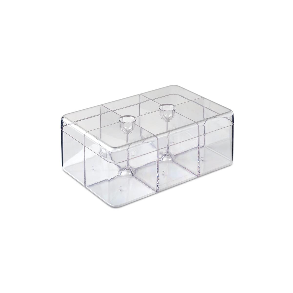 Rechteckige Vorratsdose für Teebeutel. In dieser praktischen Form lassen sich bis zu 60 Teebeutel aufbewahren und elegant präsentieren. Durch die praktische Form der Dose, die in 6 Fächer unterteilt ist (jedes Fach bietet Platz für ca. 10 Teebeutel), lässt sich selbst der letzte Teebeutel noch mühelos entnehmen. Vorratsdose mit 6 Fächern für bis zu 60 Teebeutel leicht zu öffnen spülmaschinenfest Technische Daten: Material: Styrol-Acrylnitril (SAN) Länge: 217 mm Breite: 148 mm Höhe: 85 mm