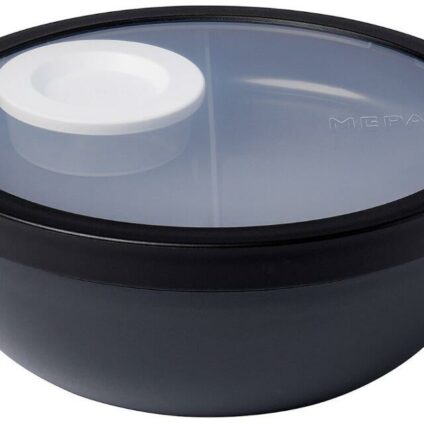 Die Mepal Vita Bento-Lunchbowl hat ein Zwischentablett und zwei herausnehmbare, auslaufsichere Bento-Schalen. Perfekt für unterwegs! Diese Bowl bietet zahlreiche Möglichkeiten für ein abwechslungsreiches Mittagessen. Und auch warme Speisen sind möglich, denn die Bento-Lunchbowl ist (Deckel kann lose auf die Schale gelegt werden) auch mikrowellentauglich.Absolut auslaufsicher100% recycelbar, hergestellt in den NiederlandenMit unterteiltem Zwischentablett und zwei herausnehmbaren, auslaufsicheren…