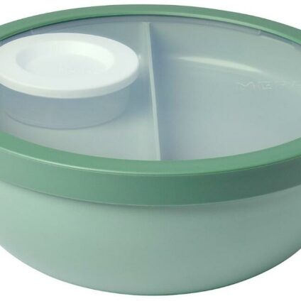 Die Mepal Vita Bento-Lunchbowl hat ein Zwischentablett und zwei herausnehmbare, auslaufsichere Bento-Schalen. Perfekt für unterwegs! Diese Bowl bietet zahlreiche Möglichkeiten für ein abwechslungsreiches Mittagessen. Und auch warme Speisen sind möglich, denn die Bento-Lunchbowl ist (Deckel kann lose auf die Schale gelegt werden) auch mikrowellentauglich.Absolut auslaufsicher100% recycelbar, hergestellt in den NiederlandenMit unterteiltem Zwischentablett und zwei herausnehmbaren, auslaufsicheren…
