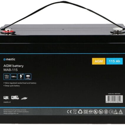 AGM-Batterie MAB-115Suchen Sie eine Mehrzweckbatterie zum Laden Ihrer Elektrogeräte oder zur Verwendung als Bordbatterie? Dann ist die Mestic AGM-Batterie MAB-90 eine gute Wahl. AGM-Batterien eignen sich besonders für Anwendungen, bei denen ein hoher Entladestrom erforderlich ist.AGM-Batterie für Ihr CampingfahrzeugMestic verfügt über herkömmliche AGM-Batterien mit unterschiedlichen Kapazitäten. Die AGM-Batterie (Absorption Glass Mat) ist eine wartungsfreie Batterie und eignet sich sehr gut als…