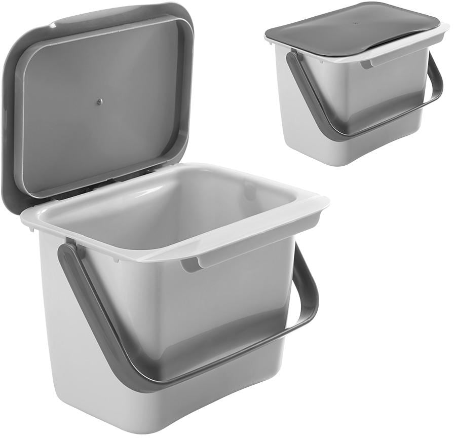 Ideal zum Sammeln von kompostierbaren Speiseresten. Geeignet für die Verwendung auf Arbeitsplatten oder dank des patentierten Metaltex Systems, zum Aufhängen an Küchenschranktüren mit oder ohne Griffe. Zum Stellen oder Einhängen an die Schranktür Mit praktischem Transportgriff Spülmaschinengeeignet Technische Daten: Fassungsvermögen: 4 L Material: Kunststoff Maße 25 x 20 x 19 cm Farbe: Grau