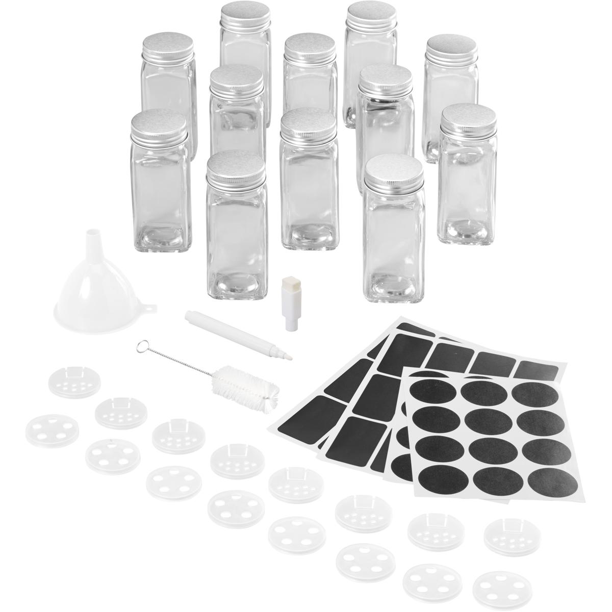 Gewürzstreuer-Set mit 12 Streuer, inklusive Trichter zum einfachen Befüllen und praktischer Reinigungsbürste. Enthalten sind außerdem 24 austauschbare Streueinsätze (12 x fein, 12 x grob) und 24 selbstklebende Etiketten und abwaschbarem Stift zum Beschriften. praktisches Set mit 12 Streuer inklusive Trichter und Reinigungsbürste inklusive Streueinsätze, Etiketten und Stift Technische Daten: Packmaß: 4,4 x 4,4 x 12 cm Material: Glas / Kunststoff Lieferumfang: 12 Gewürzstreuer 12 Streueinsatz fein 12…